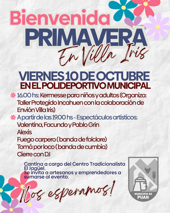 El viernes 10 de octubre, Villa Iris te invita a festejar la llegada de la primavera con actividades para toda la familia en el Polideportivo Municipal.