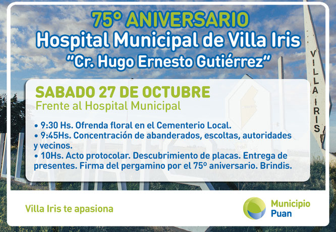 12 octubre 2018 El Hospital Municipal de Villa Iris celebra su 75° aniversario tagPlaceholderEtiquetas: sociedad Escribir comentario Comentarios: 0