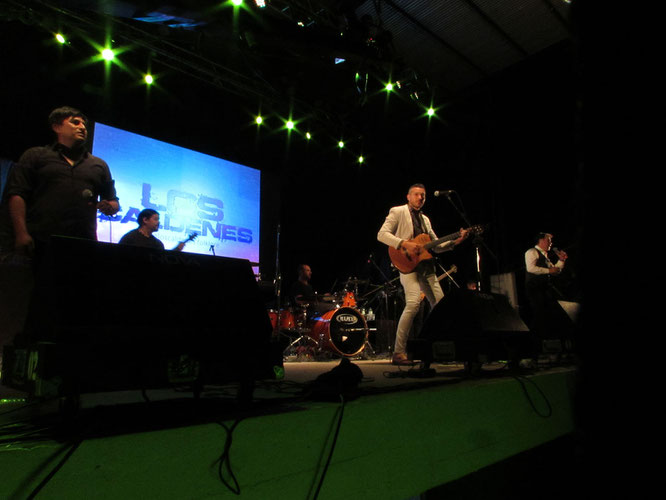Pasado un par de minutos de las 22, se inició la actividad musical y desde los primeros segundos las emociones estuvieron a flor de piel con el retorno de “Las Voces del Abra” (conformado por Julio Pascual, Horacio Santodomingo, Jorge Capotosti, Rubén Zapata y Alberto Arce, músicos invitados Rafael Svevo en percusión y Addo Couto en bajo) ya que después de muchos años se juntaron para formar parte de estas bodas de oro, con cuatro temas preparados, pero había una sorpresa reservada, ya que al término de la Zamba del Festiva (de su autoría) estallaron en el cielo de Las Encadenadas fuegos artificiales para darle el colorido merecido a la noche de cierre.