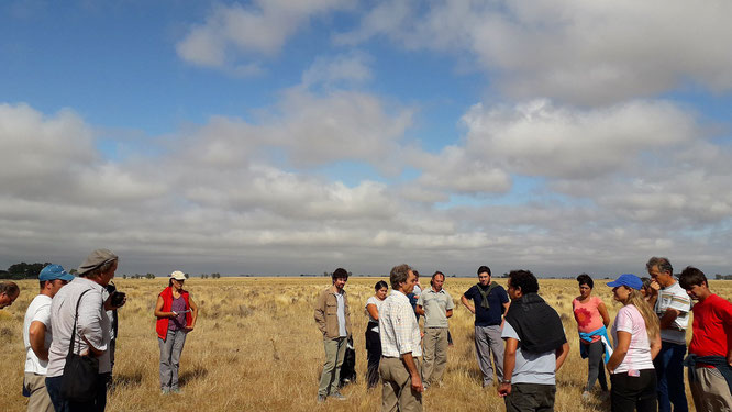 La segunda visita se realizó el miércoles 13 de marzo a la chacra “El Jagüel” de Madies y familia, ubicada en el paraje “La Rosalía” de la localidad de Bordenave. Durante la jornada el grupo recorrió los lotes de campo natural, pasturas de pastovillo y agropiro, pasturas de pastovillo y alfalfa, lote con mijo perenne, sorgo para pastoreo y diferido, rastrojos de cebada y avena. Los anfitriones explicaron el manejo del rodeo bovino mediante pastoreo rotativo y venta de terneros al destete, mientras otros son llevados a novillos y las hembras van a recría. En la Chacra también tienen producción de cerdos, olivos, hortalizas y aves de corral. En el caso del cereal guardan sus semillas para siembra y para alimentación de los animales. “Este campo lleva tres generaciones produciendo, viviendo en el lugar, conservando el suelo y la biodiversidad y vivir bien”, sostuvo Jorge Madies.