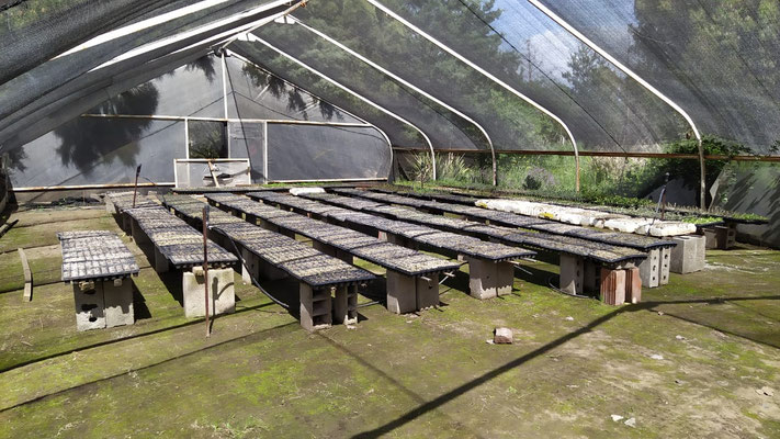 Por otra parte, el vivero cuenta también con un sombraculo, esta es una estructura recubierta por mediasombra, donde se realiza la siembra en bandeja de aquellas especies con una semilla de tamaño menor, permitiendo así, mitigar los efectos del sol y las altas temperaturas del verano sobre los plantines recién nacidos.