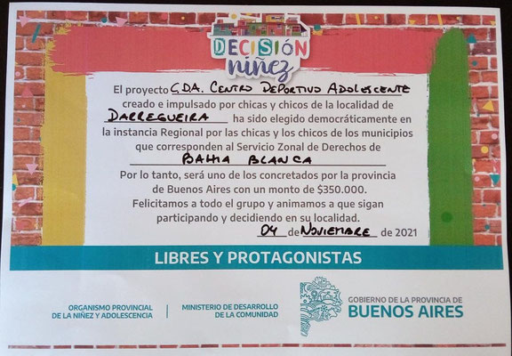 Los adolescentes convocados fueron los protagonistas de la Asamblea, realizaron una votación y seleccionaron al Proyecto de Darregueira, el cual será financiado con la suma de $ 350.000 por el Organismo de la Niñez y Adolescencia.