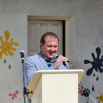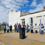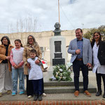 Durante el acto, el jefe comunal realizó una ofrenda floral al busto de Domingo Faustino Sarmiento, acompañado por autoridades educativas y alumnos.