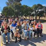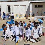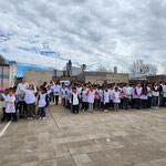 Los alumnos de 4°, 5° y 6° cantaron junto al profesor de música la chacarera para las maestras de Daiana Colamarino y los alumnos de 1°, 2° y 3° año realizaron con las profesoras de educación física una expresión corporal con la canción: “Artesano” de Joaquín del Mundo y “Tenemos tanto” de Magdalena Fleite y Fito Paez.