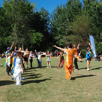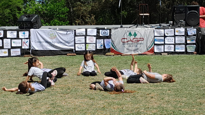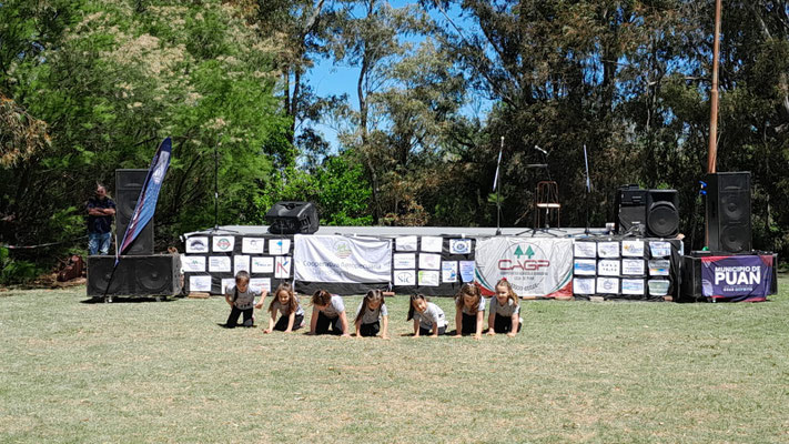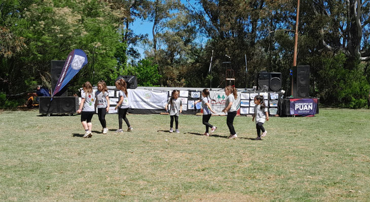 Macarena Holzman con su taller de danzas de Bordenave fue la encargada de iniciar el festival.