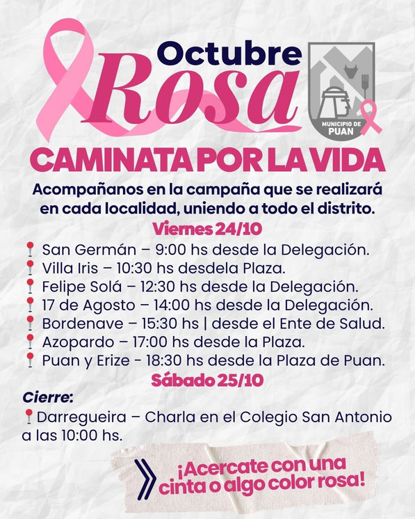 de Puan invita a los vecinos del distrito a participar de la “Caminata por la Vida”, una campaña que se realizará en cada localidad con el objetivo de promover