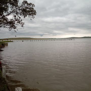 Las fotografias muestran que practicamente desapareció la playa y el espejo de agua se ha ampliado, en caso de continuar la crecida, comenzaria a preocupar.
