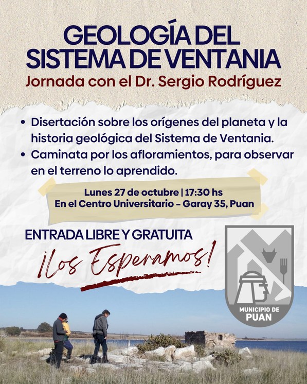 “Geología del Sistema de Ventania”, que estará a cargo del Dr. Sergio Rodríguez.