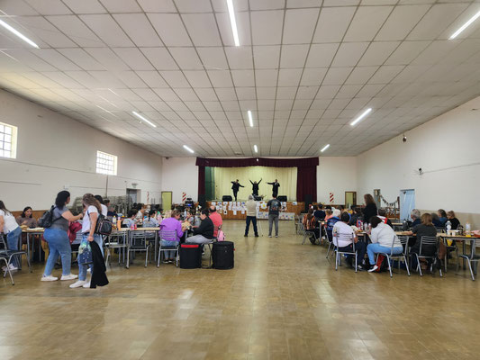 Al mediodía se realizó un almuerzo, donde se ofrecieron pollos preparados por el establecimiento “El Jagüel” y ensaladas elaboradas por la Iglesia Luterana. La propuesta tuvo excelente aceptación, registrándose muy buenas ventas y una destacada participación de los asistentes.