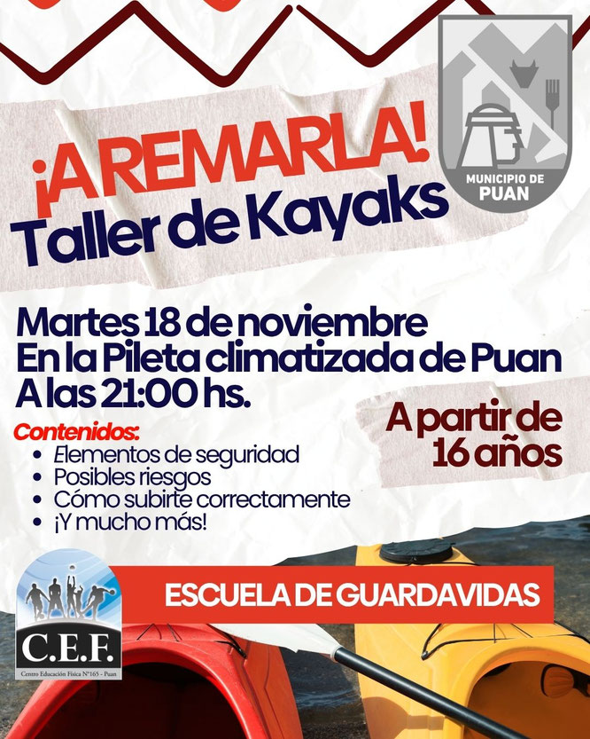 El Municipio de Puan, a través de la Escuela de Guardavidas y el CEF N° 165, invita a